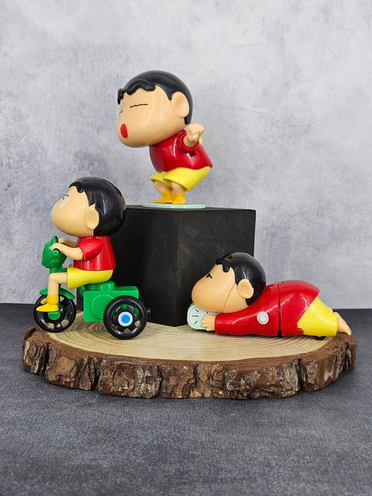 Crayon Shinchan Action Figure Set of 3 | Mechanical Crawling + Cycling Toys & Standing Figurine | PVC | 12-15.5 cm | Free Shipping On Prepaid Order|