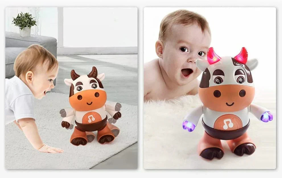 The colorful lights on the toy attract children's attention in no time. The cow's many body movements and sounds arouse all children's curiosity.